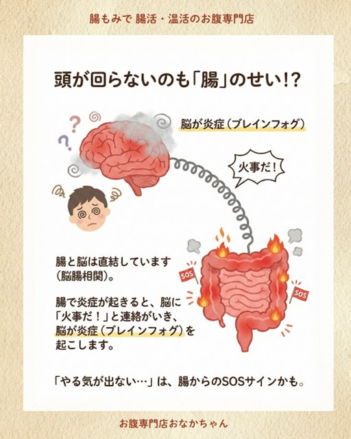 これが、頭の中に霧がかかったような状態になる**「ブレインフォグ(脳の霧)」**の正体の一つだと考えられています。「やる気が出ない…」という感覚は、実は脳ではなく、腸からのSOSサインかもしれないのです。