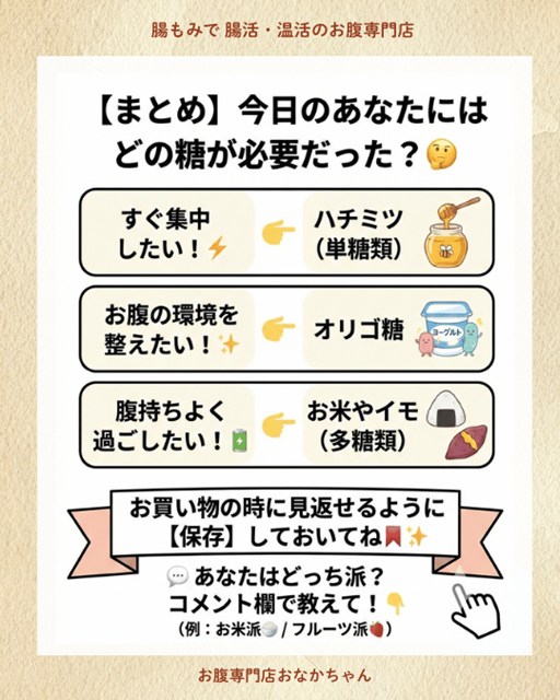 「甘いもの=悪」と決めつけるのではなく、今の自分の体が必要としている糖を賢く選ぶことが、無理のない美容・健康習慣への第一歩です。お買い物の際は、ぜひ食品の裏側(成分表示)を見て、どんな糖が含まれているかチェックしてみてくださいね。