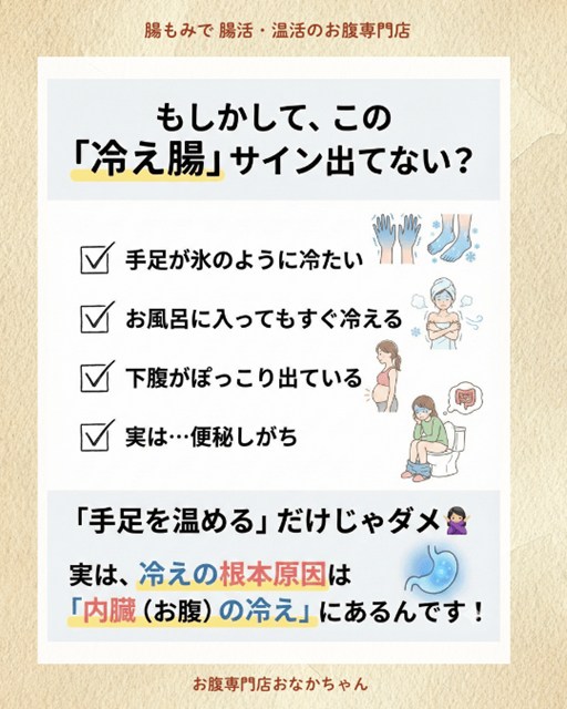 多くの人が「手足が冷えるから」と、手袋や靴下で外側から温めようとします。もちろんそれも大切ですが、実は冷え性の根本原因の多くは**「内臓(特にお腹)の冷え」**にあることをご存知でしょうか?