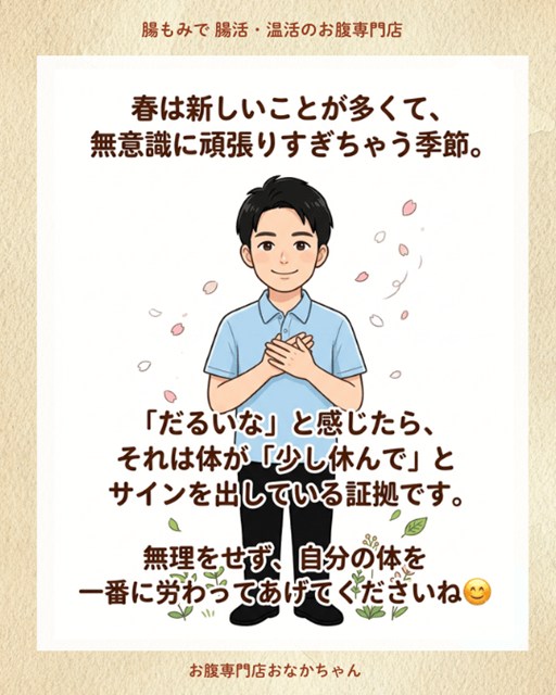 【大阪で腸活】春の「なんだかだるい…」は腸もみでスッキリ!おなかちゃん流・春バテ対策