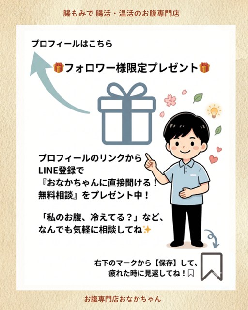 こんにちは! 大阪で腸もみを通じて、皆様の腸活と温活をサポートしているお腹専門店『おなかちゃんのお店』の、おなかちゃんです🌱