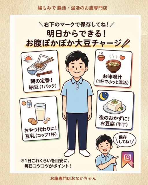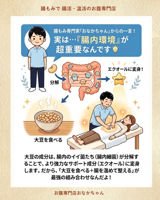だからこそ、「大豆を食べる + 腸を温めて整える(腸活)」が最強の組み合わせになります。