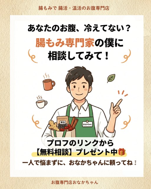こんにちは!大阪で腸もみと腸活・温活の専門店「おなかちゃんのお店」をしている、おなかちゃんです🙌