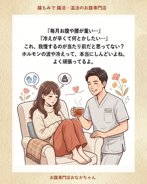 毎月のドヨーンとしたお腹や腰の重さ、そしてツラい冷え…。 「いつものことだから」「体質だから」と、我慢するのが当たり前になっていませんか? ホルモンの波や冷えって、本当にしんどいですよね。毎日よく頑張っていますよ。