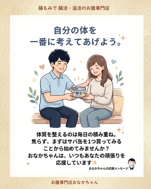 体質を整えるのは、毎日の小さな積み重ねです。 焦る必要はありません。まずは明日、スーパーでサバ缶を1つ買ってみる。お味噌汁にアマニ油を垂らしてみる。そんな小さな一歩から始めてみませんか?