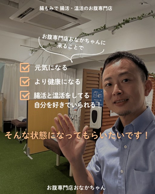 などなど、どんな些細なことでも構いません。 大阪 腸活・温活といえば「おなかちゃん」!と皆さんに言っていただけるよう、一人ひとりのお悩みに寄り添って、全力でサポートさせていただきます。