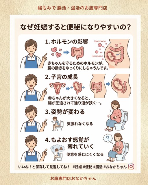 実は、妊娠中の便秘は、赤ちゃんが順調に育っているからこその「自然な体の変化」でもあります。今日は、お腹の専門家である僕から、妊娠すると便秘になりやすい原因と、お家でできる優しい「腸活・温活」ケアについてお話ししますね。