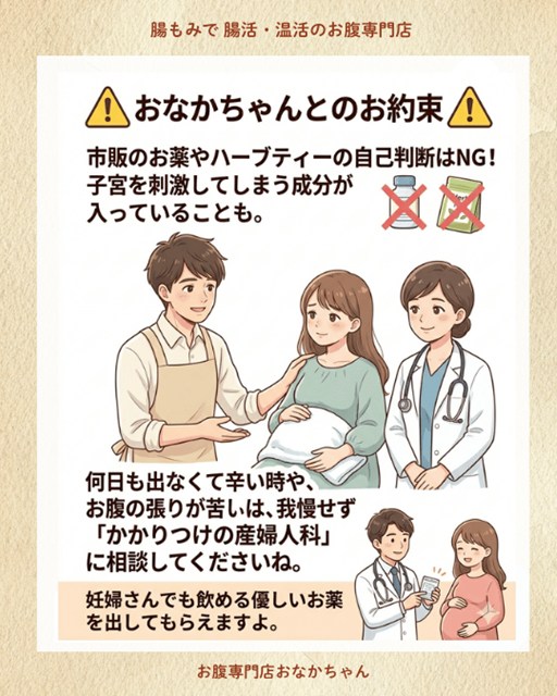 何日も出なくて辛い時や、お腹の張りが苦しい時は、我慢せずに必ず**「かかりつけの産婦人科」**のお医者さんに相談してください。妊婦さんでも安心して飲める、お腹に優しいお薬(便の水分を増やすお薬など)を処方してもらえますよ。