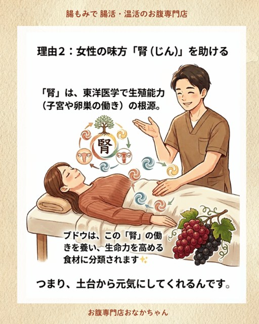 ブドウなどの食材(内側からのケア)も大切ですが、**外側からのアプローチ(腸もみ)**も、子宮や女性の健康に直結します。