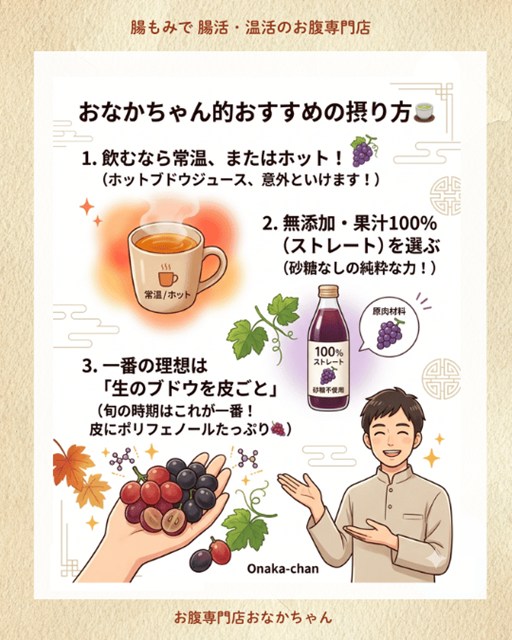 ブドウが体に良いからといって、市販の冷たいブドウジュースをゴクゴク飲むのはちょっと待ってください!