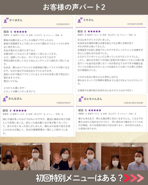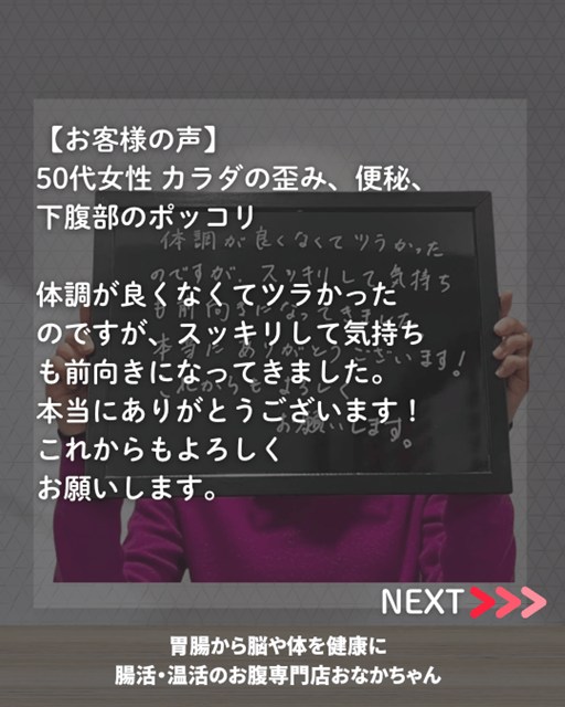 「体調が良くなくてツラかったのですが、スッキリして気持ちも前向きになってきました。本当にありがとうございます!これからもよろしくお願いします。」