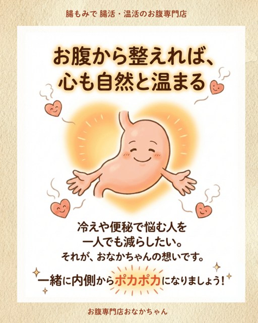 こんにちは!大阪で腸活と温活のお腹専門店「おなかちゃんのお店」をしている、おなかちゃんです🌱