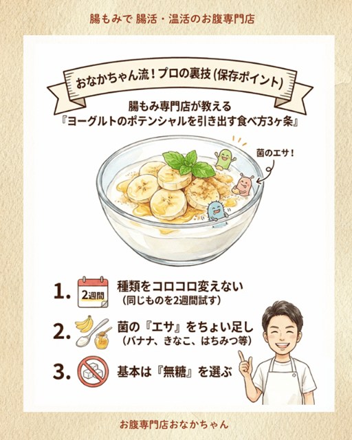 腸活において、「とりあえずヨーグルトを食べる」だけではもったいない!今日は、これまでたくさんのお客様のお腹に触れてきた「腸もみのプロ」の目線から、あなたの目的に合ったヨーグルトの選び方と、ポテンシャルを爆上げする食べ方の裏技を分かりやすく解説します。