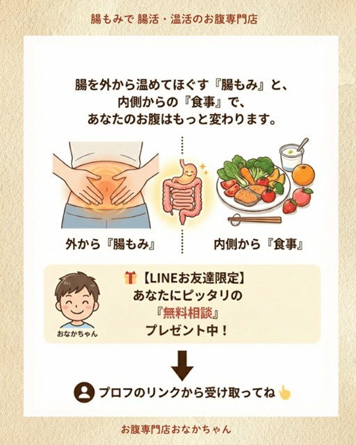 そんな方は、ぜひ大阪・本町駅にある「おなかちゃん」のお店にご相談くださいね。オールハンドの優しい腸もみで、あなたのお腹をポカポカに温めます🌿