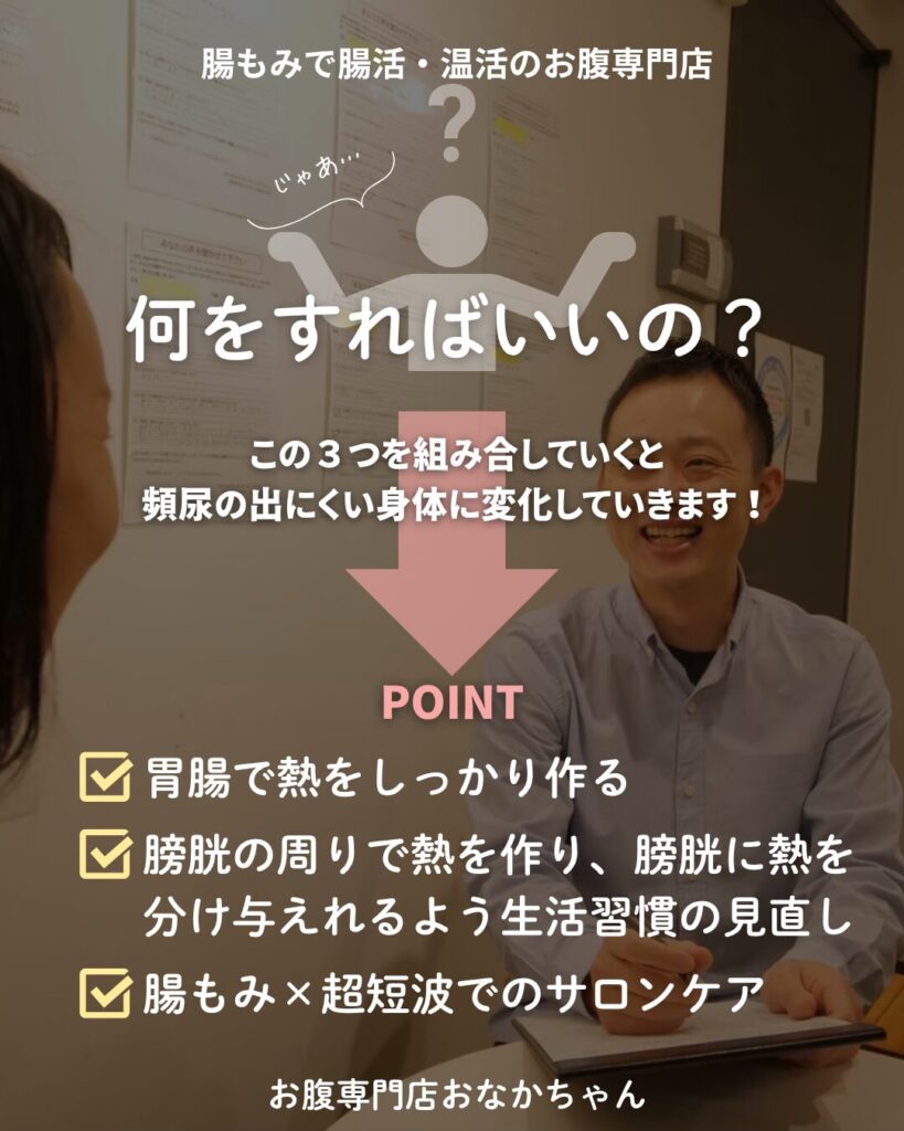 この3つを組み合していくと頻尿の出にくい身体に変化していきます!