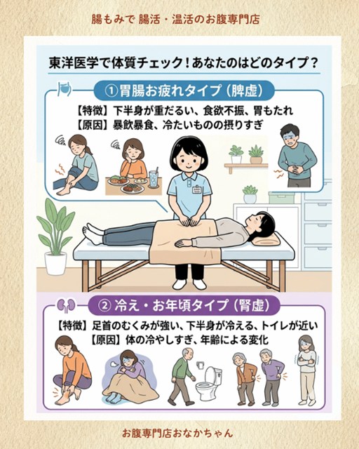 今回は、東洋医学の視点から紐解く「4つのタイプ」と、大阪にお住まいの方にぜひ知ってほしい「腸もみ・腸活」による内側からのアプローチについて、優しく解説していきますね!