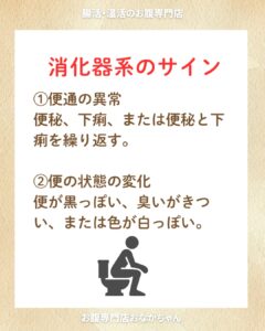 便が黒っぽい、臭いがきつい、または色が白っぽい。