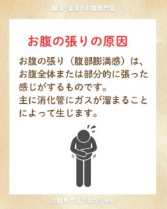 お腹の張り(腹部膨満感)は、お腹全体または部分的に張った感じがするものです。