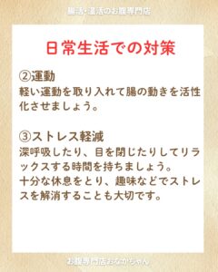 お腹の悩みを軽減するためには、日々の生活習慣を見直すことが大切です。