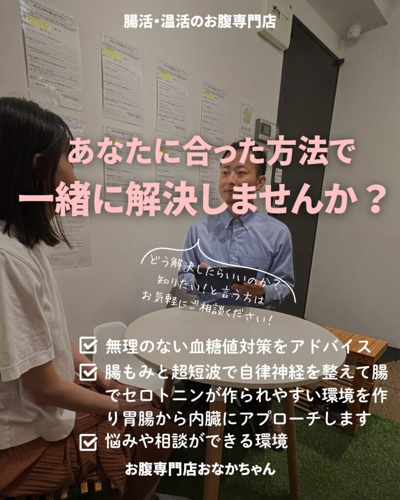【腸活・温活のお腹専門店おなかちゃんのお店ではたくさんの人の悩みや相談を受け付けています!】