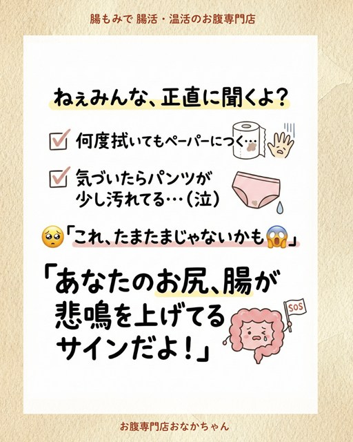 「つく」ということは、腸内環境や肛門付近に何らかのトラブルが起きている証拠。今日は、なかなか人には聞けない「お尻の悩み」と「腸からのSOS」について深掘りします。