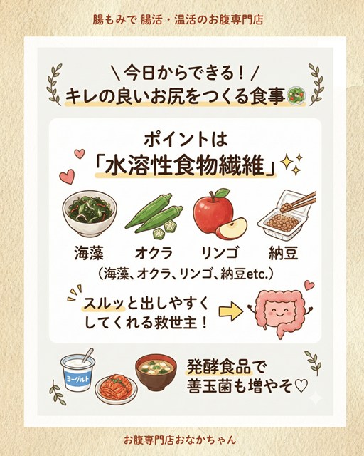 スッキリ快便、汚れ知らずのお尻を目指して、今日から腸をいたわってあげましょうね!