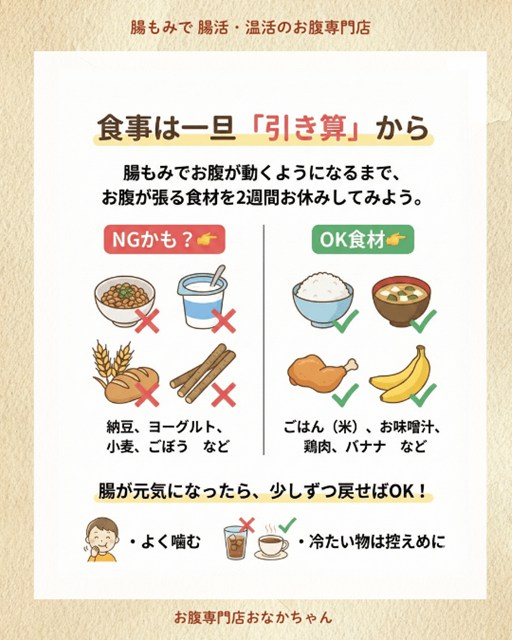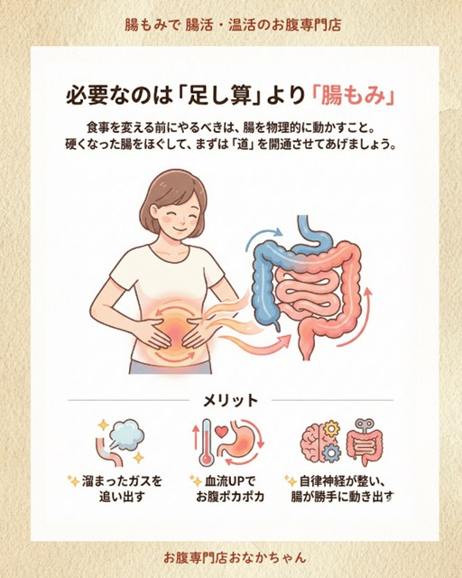 これには、「食事の内容」だけでなく、「腸の状態(硬さ・冷え)」が関係しています。